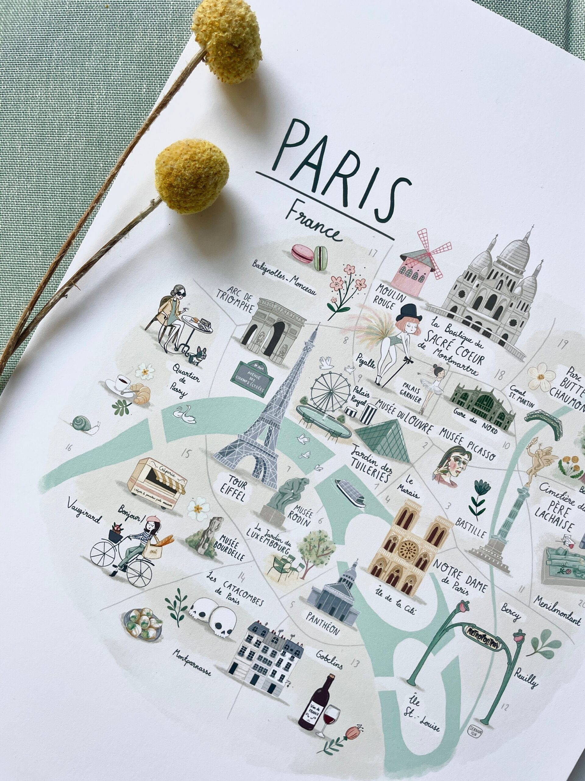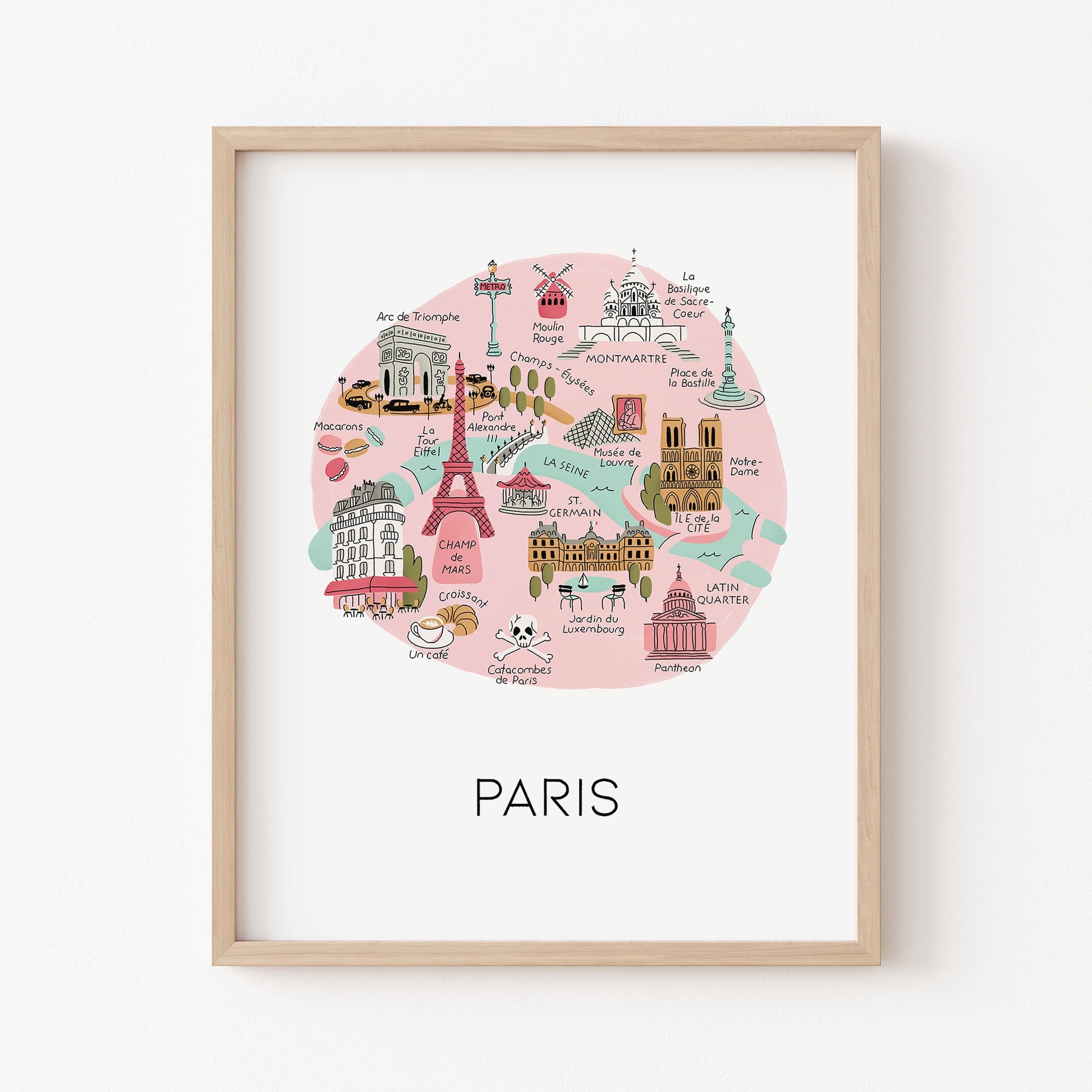 Paris Illustrated Map Art Print Paris City Map Paris Art Print Paris Travel Art Illustrated City Map France Art Print Paris Wall Art Etsy
