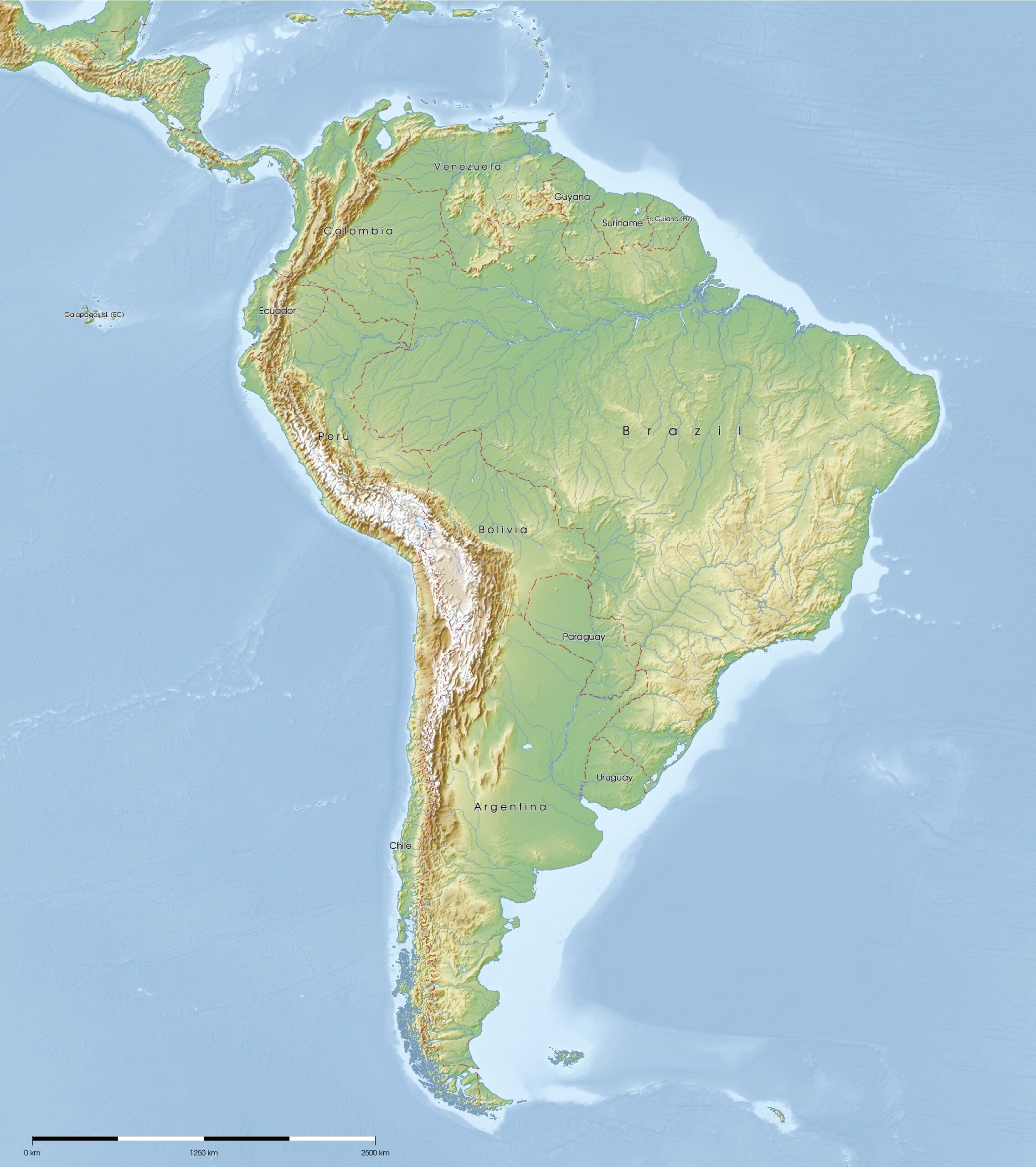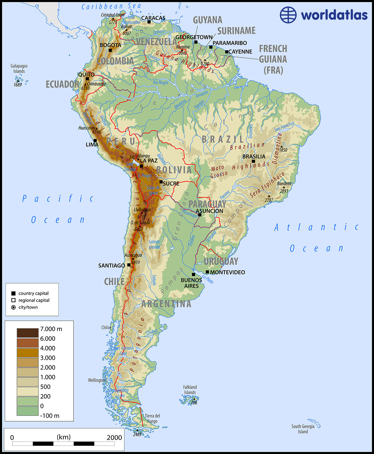 Printable Physical Map South America