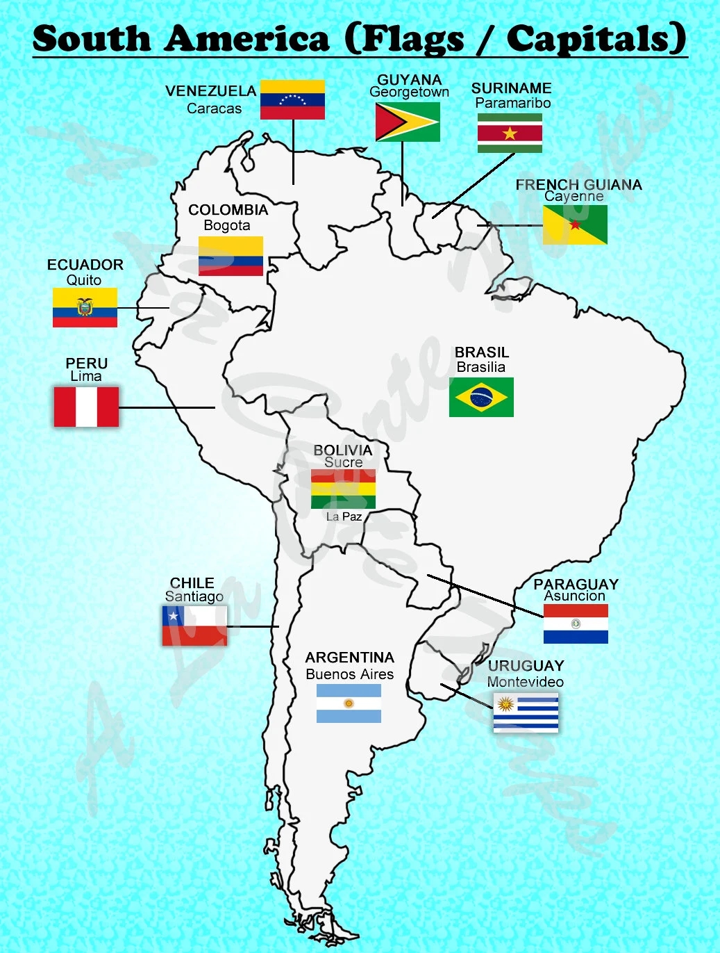 South America Map With Flags Capitals digital Download Etsy