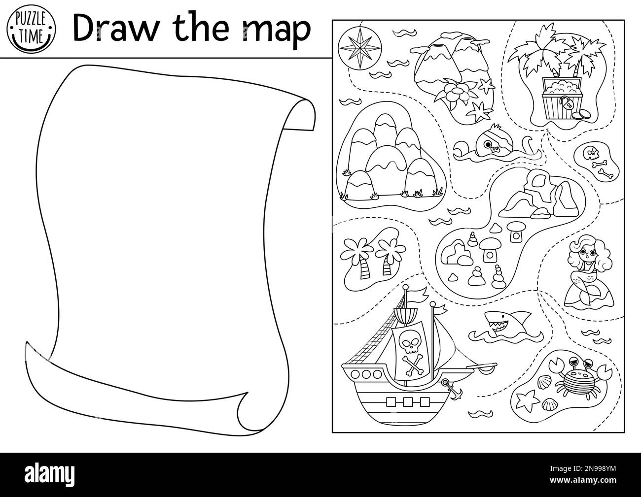 Draw The Pirate Map Free Creative Drawing Task For Kids Complete The Picture Vector Pirate Drawing Practice Worksheet Printable Black And White Ac Stock Vector Image Art Alamy