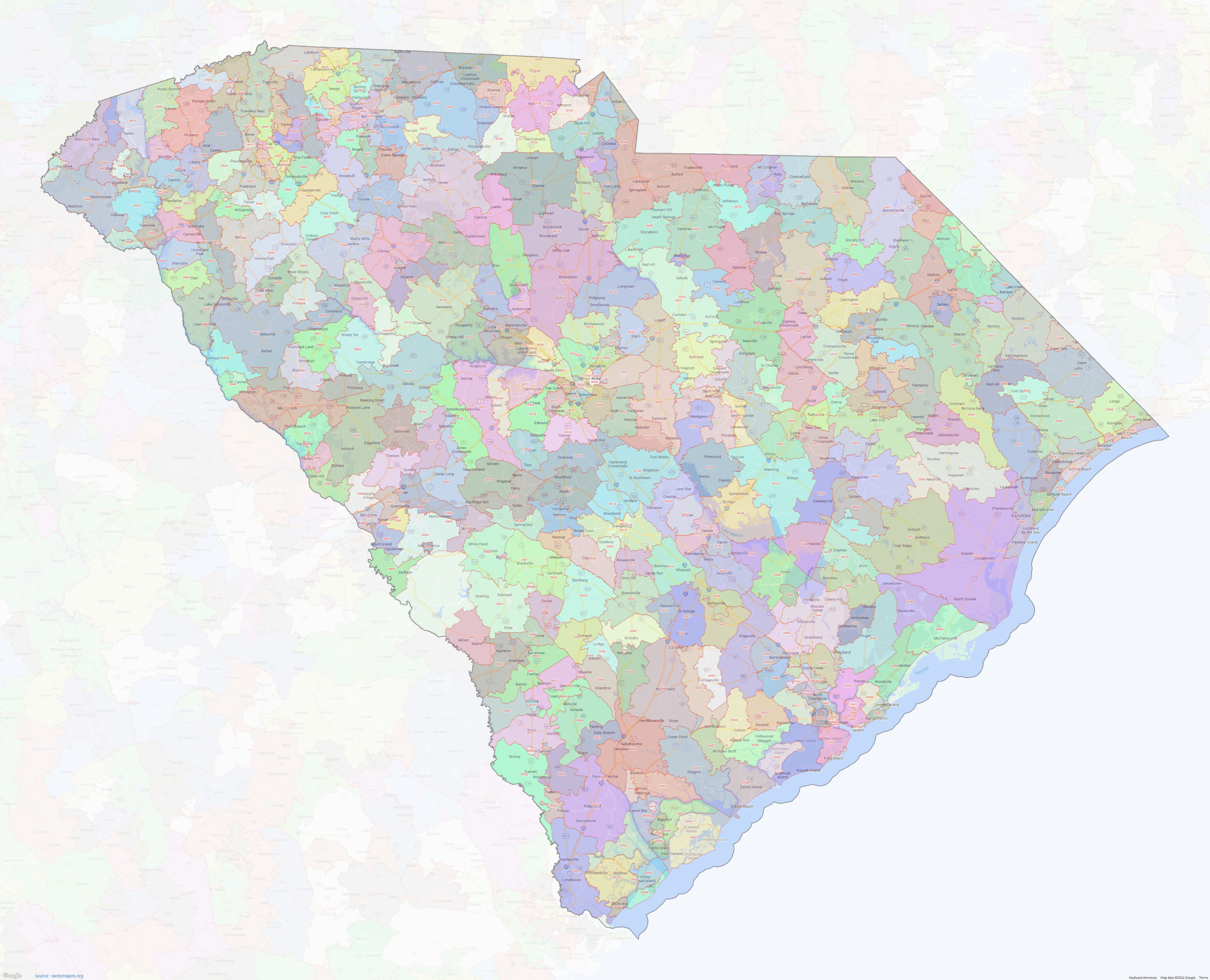 South Carolina ZIP Codes Shown On Google Maps