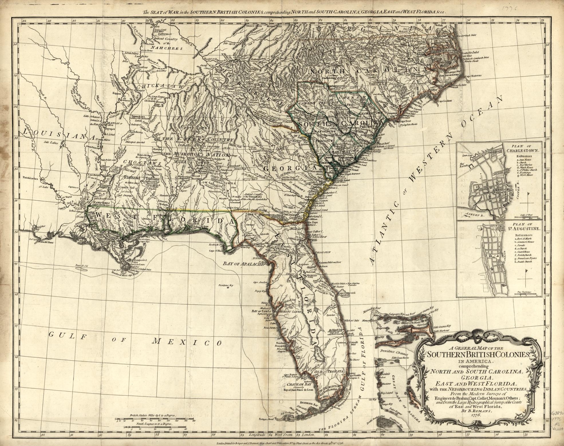 A General Map Of The Southern British Colonies In America Comprehending North And South Carolina Georgia East And West Florida With The Neighboring Indian Countries From The Modern Surveys Of Engineer De