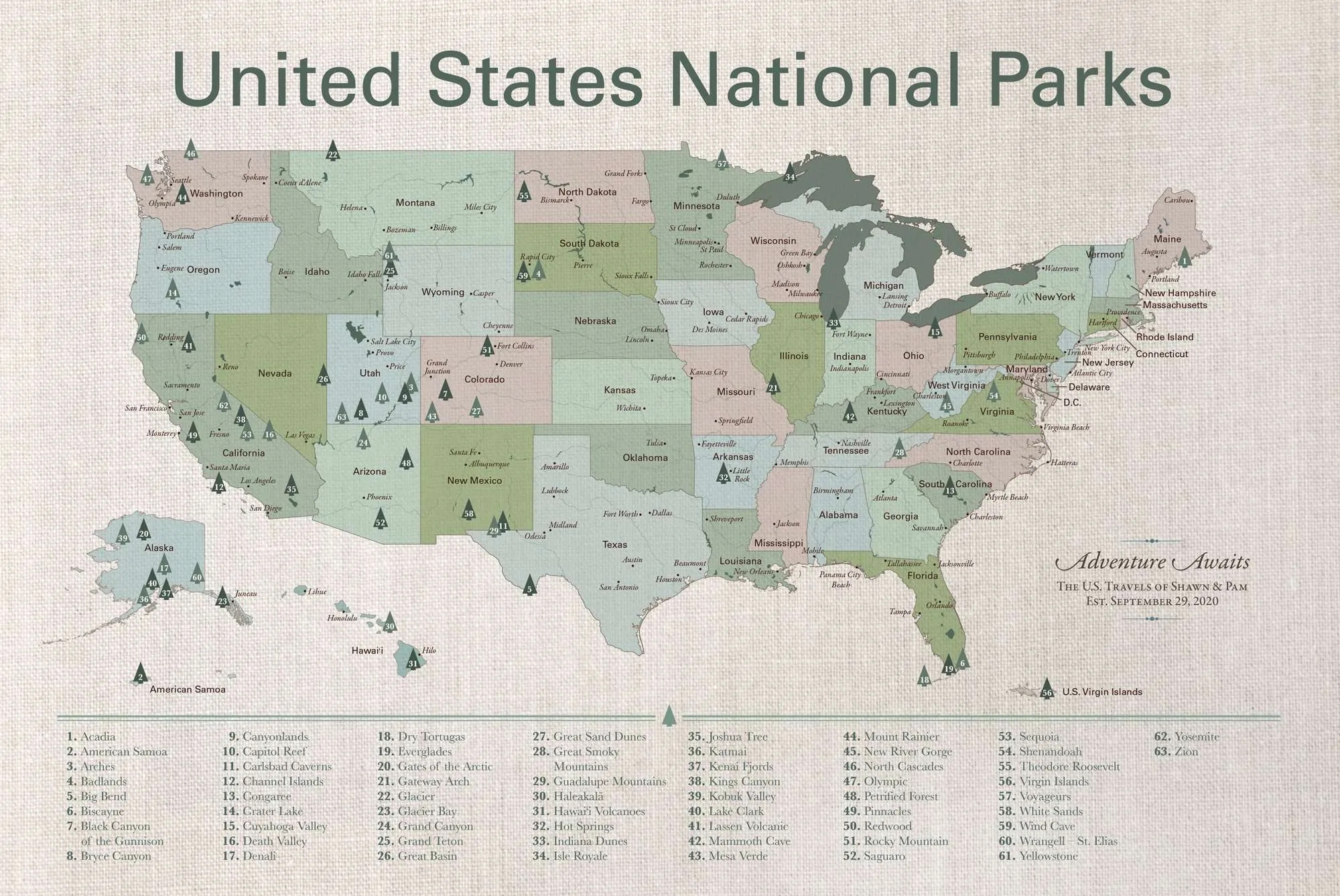 Your Printable U S National Parks Map With All 63 Parks TREKKN