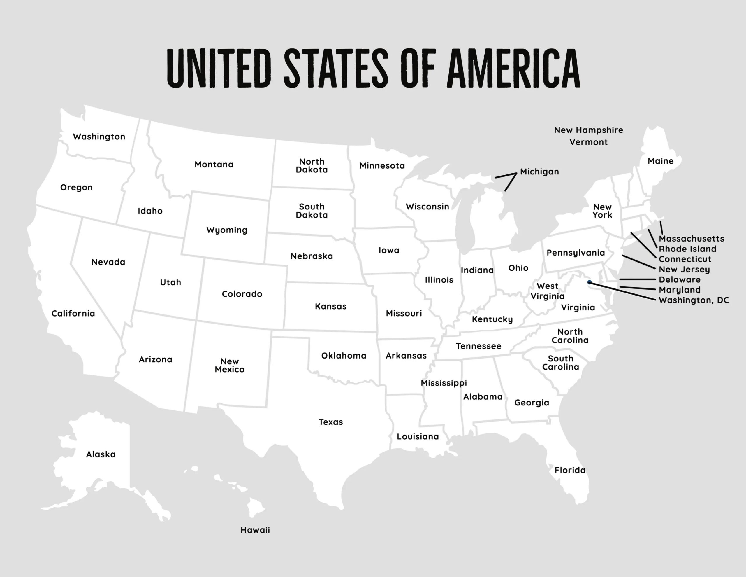 US Map With State Names Printable Map Of The USA United States Showing States Etsy