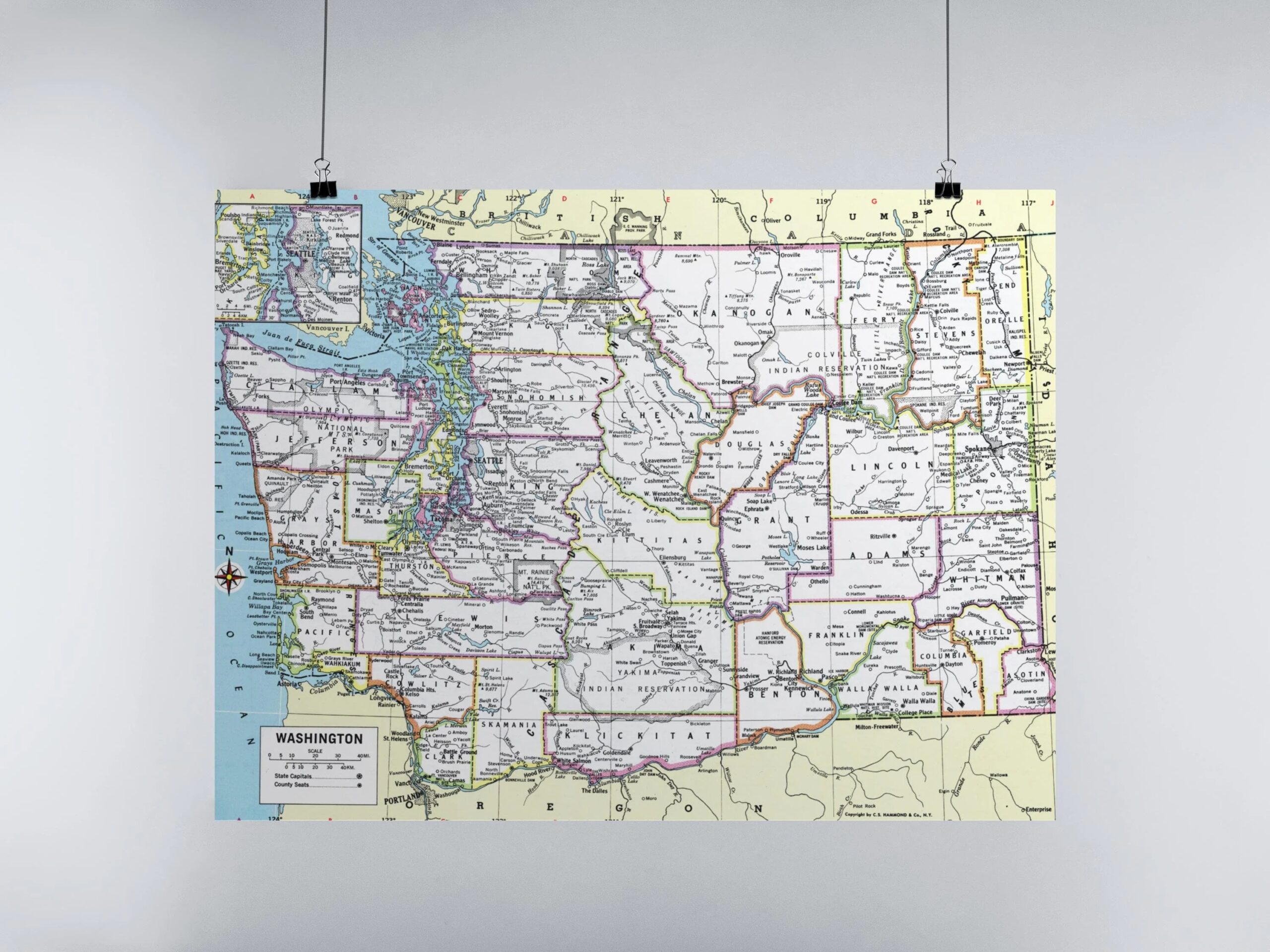 Washington Map Instant Download Printable Map Digital Download Wall Art Antique Map Etsy