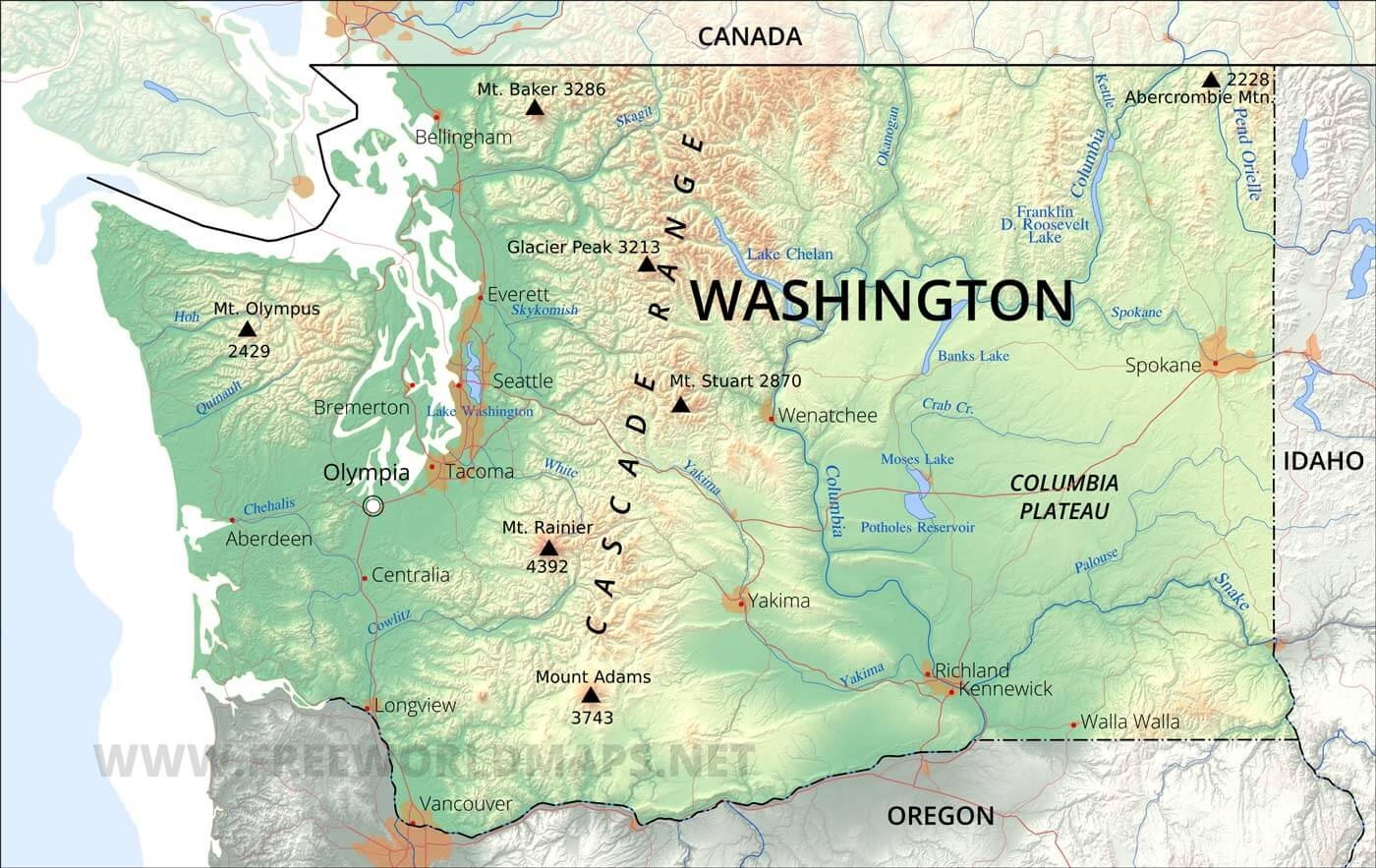 Physical Map Of Washington