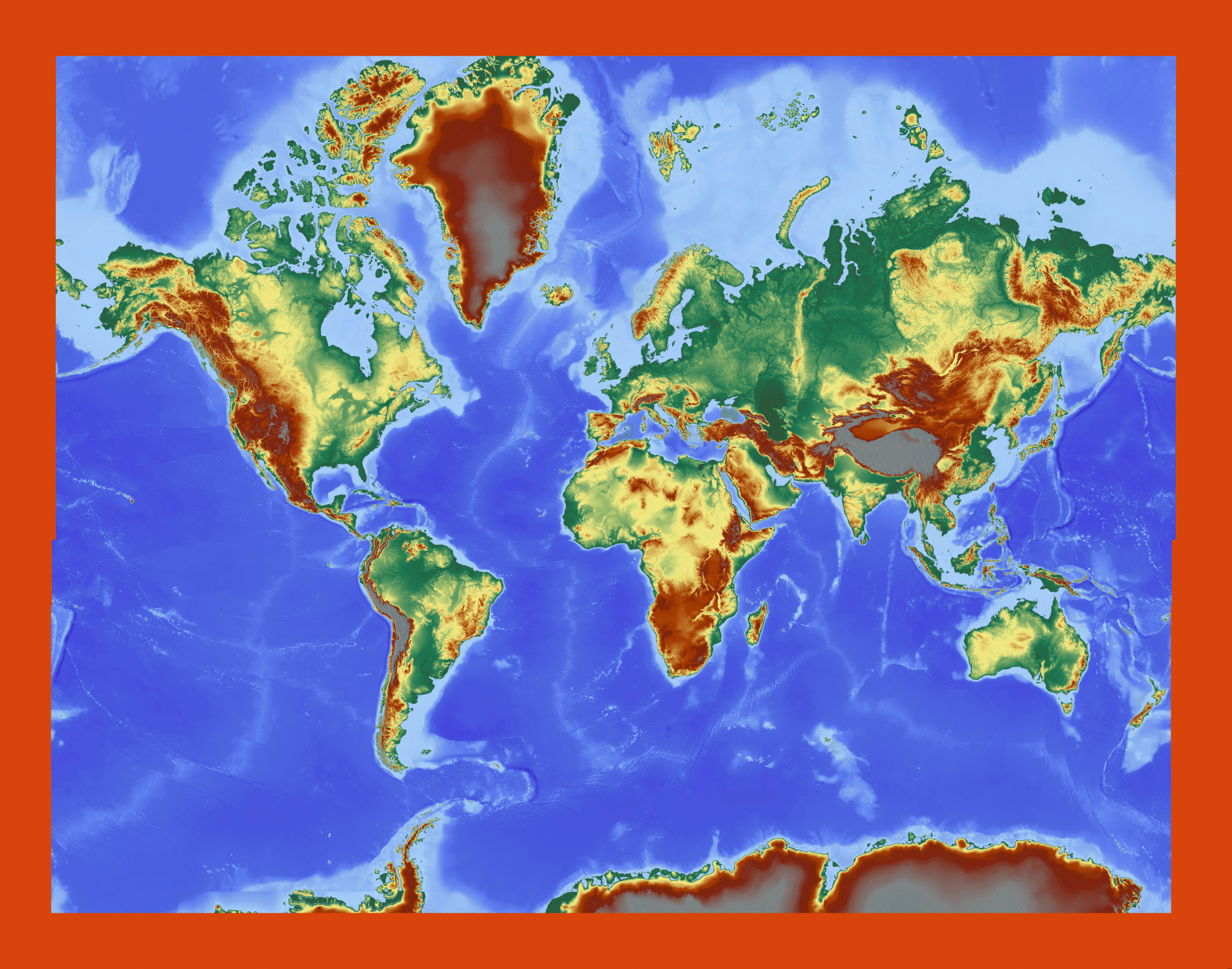 Elevation Map Of The World 4 Topography Wall Decor Map Art Print Etsy